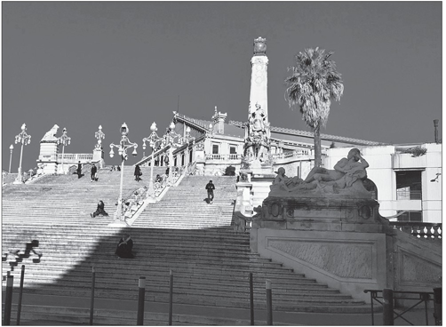 Souvent, on découvre Marseille à partir des grands escaliers de la gare Saint-Charles permettant d’atteindre le boulevard d’Athènes et La Canebière. Commencés en 1919, ils devaient être prêts pour l’Exposition coloniale internationale de 1922. Ils ne seront finalement terminés qu’en 1925. Tout à la gloire de l’Empire colonial, ils incluent deux groupes en pierre de Louis Botinelly, les colonies d’Afrique et les colonies d’Asie, dont les allégories sont à chaque fois des personnages féminins condensant tous les stéréotypes et fantasmes racistes et sexistes propres au colonialisme. Des militant·es et organisations antiracistes réclament régulièrement que ces sculptures soient retirées ou, pour le moins, accompagnées de commentaires appropriés. L’historien Philippe Joutard les a décrites ainsi :