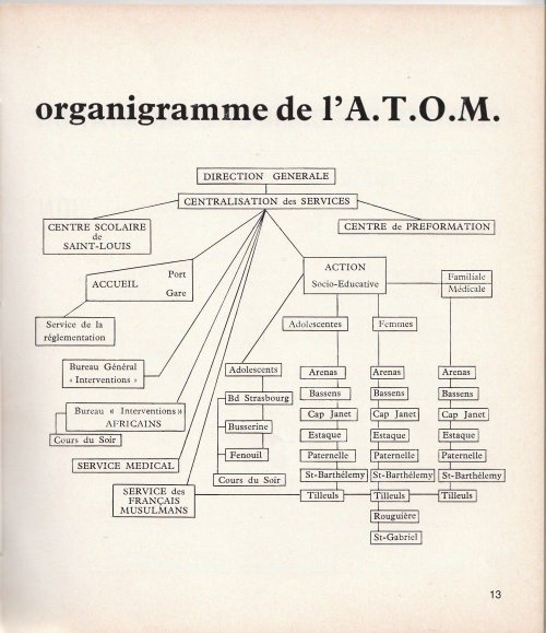 Madame et Monsieur Belpeer dirigent l’ATOM avec beaucoup d’autorité. Le conseil d’administration est composé de chefs d’entreprise, du frère du directeur du journal de droite « le Méridional » et d’un militaire proche de l’église. L’objectif est bien de contrôler et encadrer la main d’œuvre ouvrière immigrée et de gérer les familles issues de l’immigration postcoloniale