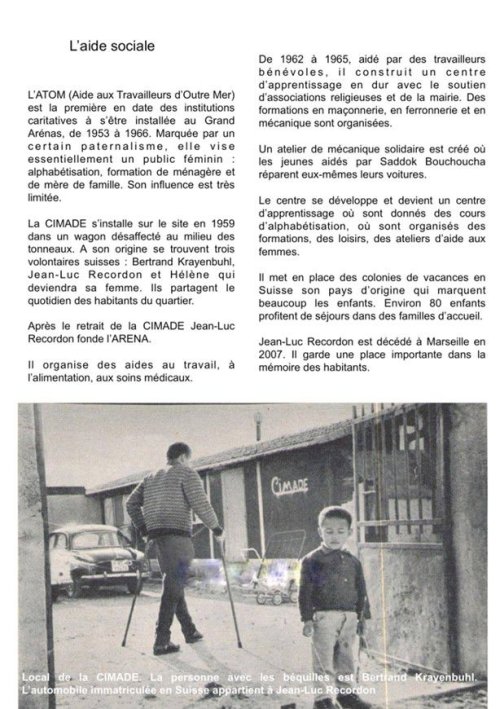 L’ATOM ouvre un centre en 1953 sur le site du grand Arenas dans le quartier de la Cayolle (9ième arrondissement). Les permanences se tiennent dans les baraques qui ont la forme de demi-tonneaux.