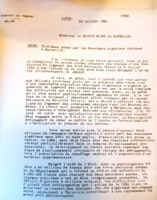 Les premiers bidonvilles ont été construits pour des familles gitanes et des « français musulmans » venant d’Algérie. Des cités provisoires et des cités HLM sont construites pour résorber une partie des bidonvilles comme par exemple Bassens ou la Busserine…