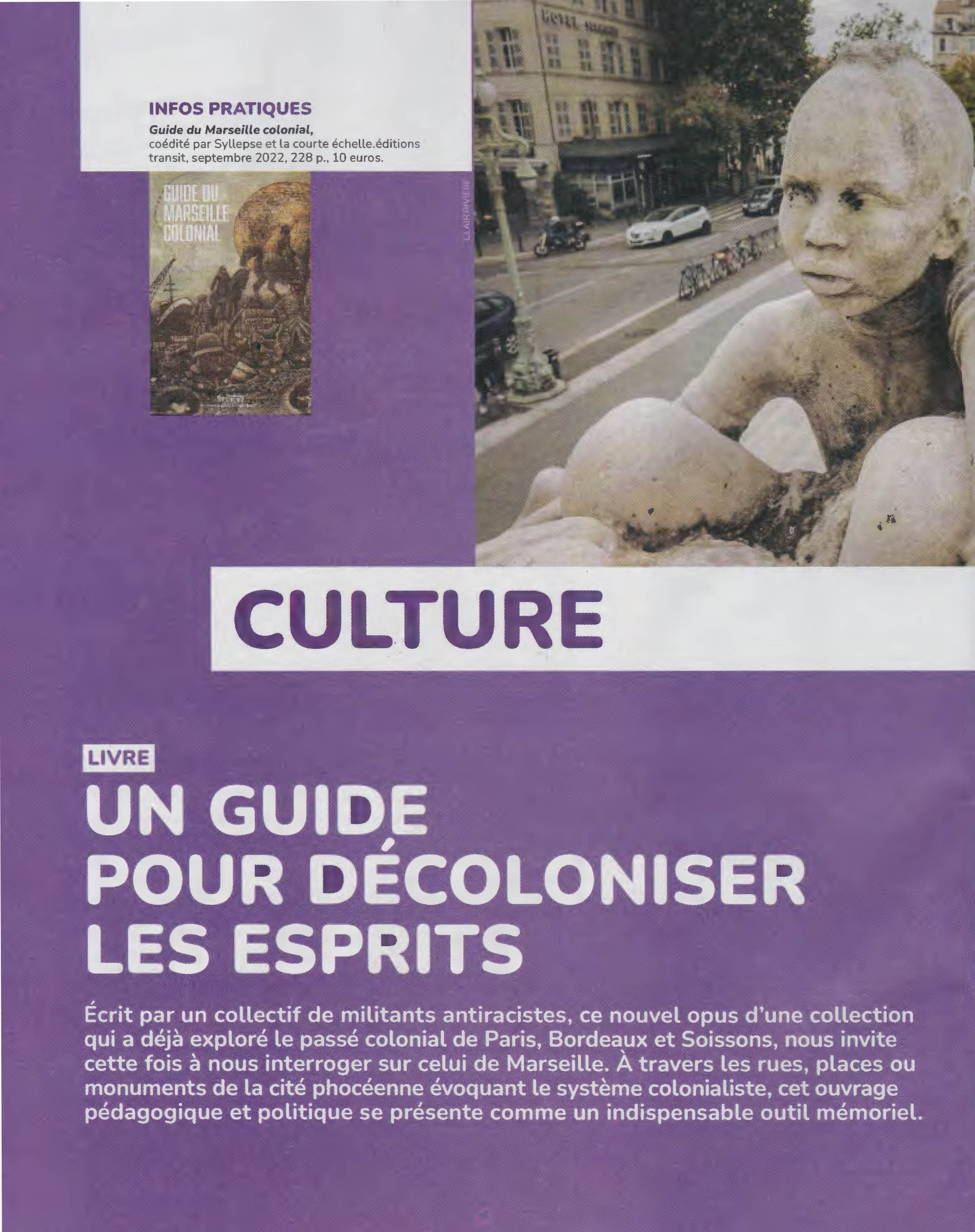 Dans son numéro de févrierLa Nouvelle Vie Ouvrière (NVO), la magazine de la CGT, consacre un article de Nathalie Carmeni au Guide de Marseille colonial.